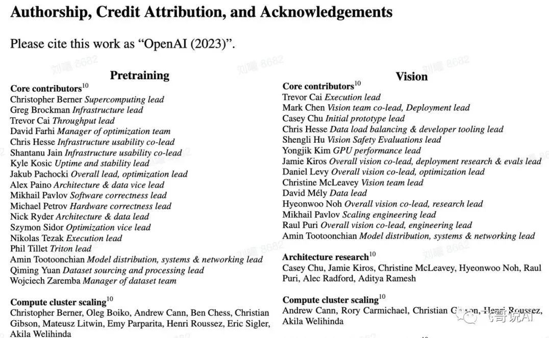 论文除了各种「炫技」,还特别用了三页把所有为GPT-4不同系统有贡献人员都列出来,粗略估计应该已经超过百人,再次体现OpenAI内部团队成员众志成城、高度协作的状态。以此对比其他几家的团队作战能力,在众志成城这方面是不是差得有点远?