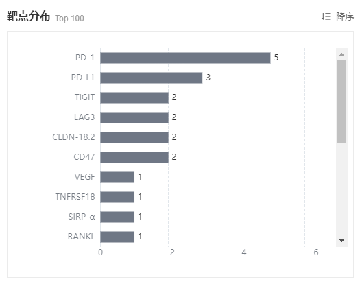 不过,透过多款双特异性抗体的开发,信达布局最广的还是 PD-1/L1,也是国内在这个靶点上新药项目最多的企业。