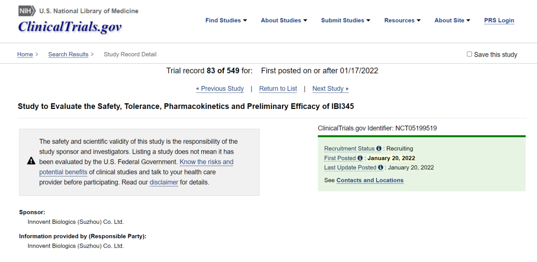 1 月 20 日,信达生物在 ClinicalTrails.gov 上登记了一项 1 期临床(登记号:NCT05199519),评估 Claudin18.2 CAR-T 疗法 IBI345 在 CLDN18.2 阳性实体瘤患者中的安全性、耐受性、PK 性质以及初步疗效。这是信达的第 2 款进入临床的 CAR-T 产品,此前信达与驯鹿医疗联合开发了 BCMA CAR-T IBI326,预计在 2022 年初递交新药上市申请。
