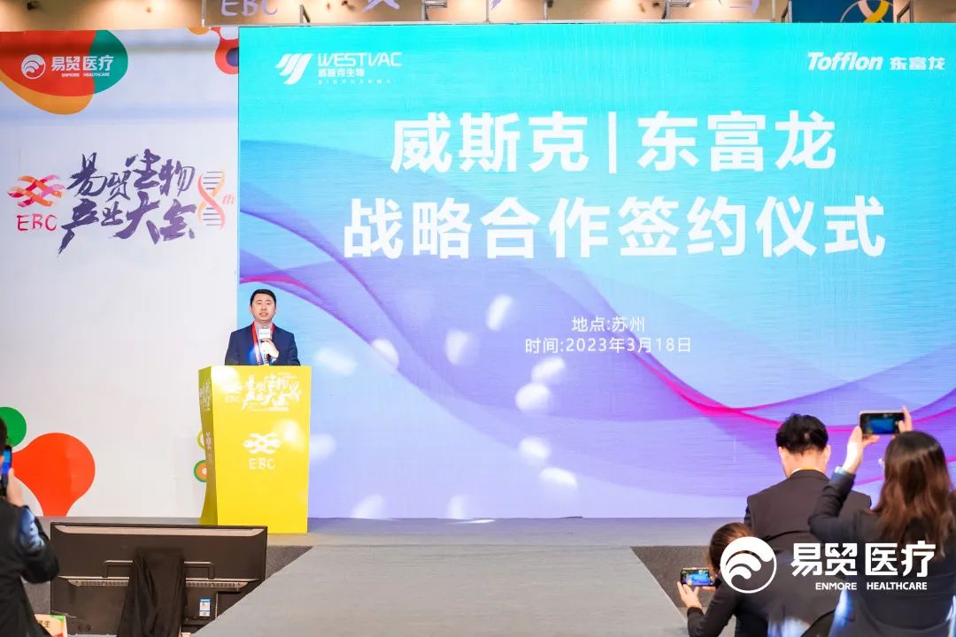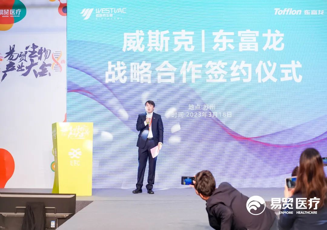 3月18日下午,东富龙科技集团股份有限公司(以下简称“东富龙”)与威斯克生物医药有限公司(以下简称“威斯克生物”)在2023年易贸EBC会议上签署“东富龙与威斯克生物的战略合作协议”。双方将在生物医药领域的工艺设计与开发、厂房设计咨询、施工、验证、生物原液上下游、制剂、检查包装等多个领域,开启全方位的深入合作,开启双方合作新篇章!