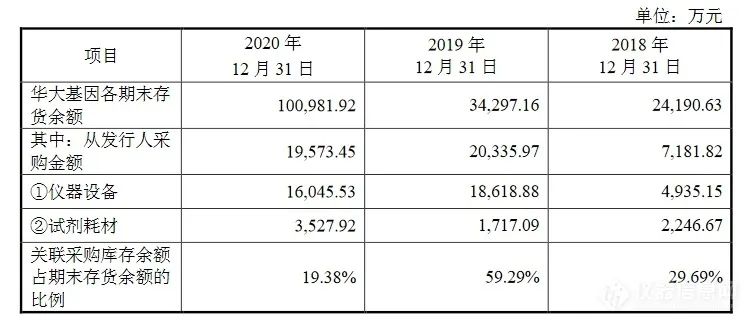 2018 年至2020 年,公司关联采购余额占期末存货余额的比例分别为29.69%、59.29%和 19.38%,其中主要为测序仪结存,大部分有在手订单作为支撑。公司关联采购的试剂均有一定的有效期,在期后基本用于生产消耗。