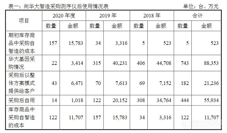 2018 年至2020 年,公司向华大智造采购测序仪后,累计自用444 台、累计以整体方案模式提供给医疗机构等客户182 台。公司向华大智造采购实验室自动化设备后,累计自用 126 台、累计以整体方案模式提供给医疗机构等客户 196台。公司向华大智造关联采购测序仪配套试剂金额分别为 15,277.72 万元、15,810.49 万元和17,956.43 万元,其中2018 年采购金额增长77.97%,与同期采购测试仪数量相匹配;2019 年和2020 年,公司采购测序仪配套试剂整体呈现上升趋势,与公司传统基因测序服务业务收入增长相匹配。