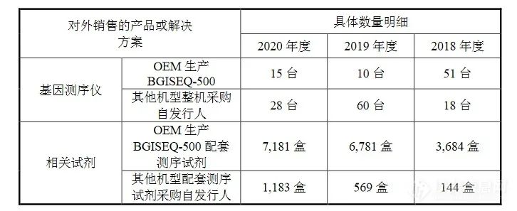 2018 年至2020 年,华大基因公司以整体方案模式提供给客户的产品或解决方案中,通过OEM 生产或采购自华大智造的产品数量明细情况如下: