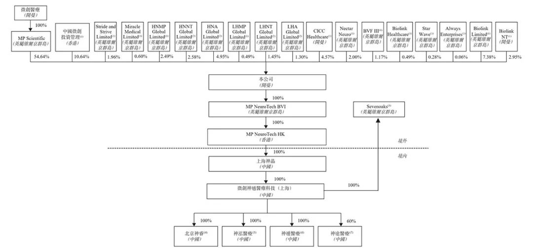 微创脑科学起源于2012年成立的微创神通医疗科技。2021年5月,微创脑科学战略投资了以色列公司Rapid Medical并成为其第一大股东。2021年11月11日,微创医疗与微创脑科学按计划签署1.5亿美元(约合人民币10亿元)融资协议,引入了包括中金资本、华翊资本、博华资本、贝霖资本、润昆天禄、同鑫投资在内的多家投资者,此前认购7000万美元可转债贝霖资本已转股。交易完成后,微创脑科学投资后估值约17.5亿美元(人民币约112亿元)。招股书显示,微创脑科学为中国神经介入医疗器械行业的先行者及最大的中国公司。