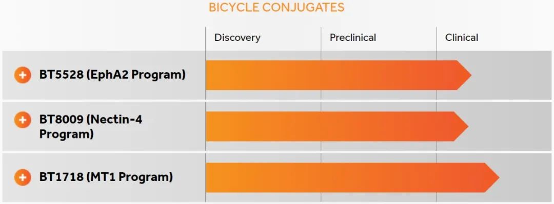 英国的Bicycle Therapeutics公司以环肽分子的筛选和开发为其核心技术平台,在此基础上,他们探索了多种应用场景,包括多肽-药物偶联物(即PDC),目前已有部分项目进入临床试验阶段。