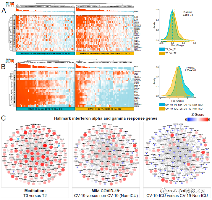 Chandran解释说,几乎所有(97%)的干扰素“反应基因”在冥想后被激活,而根据来自新冠肺炎患者的公开基因活性数据显示,在轻症患者中,这一数字是76%,而重症患者只有31%。
