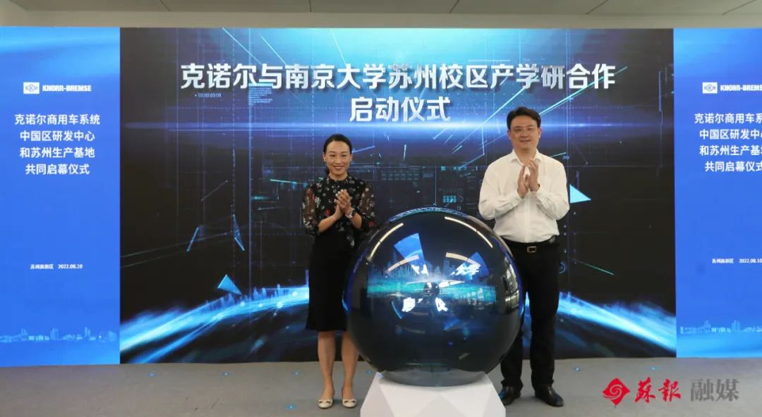 仪式上,克诺尔集团与苏州高新区签署深化战略合作协议,将围绕高端科创资源导入、高端装备智能制造、产学研平台构建、科技成果本土转化等方面深化合作。克诺尔集团与南京大学苏州校区达成产学研合作,将积极嫁接校企资源,促进双方在人工智能图像算法等科研领域加强合作,推动技术成果转化,协同培养更多高素质人才。克诺尔集团还携手嬴彻科技、苏州挚途、友道智途、联创汽车电子、保隆科技、华域汽车、元橡科技等行业伙伴,共同启动了中国商用车智能驾驶底盘控制系统协同创新行动计划。