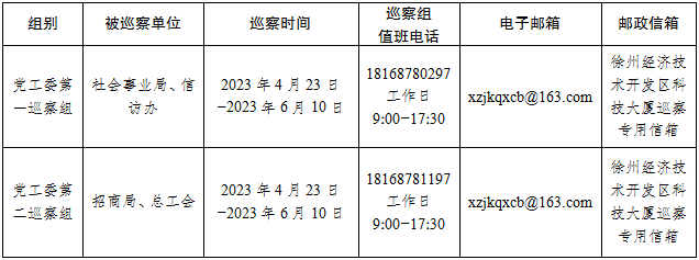 徐州经开区党工委第十二轮巡察进驻一览表