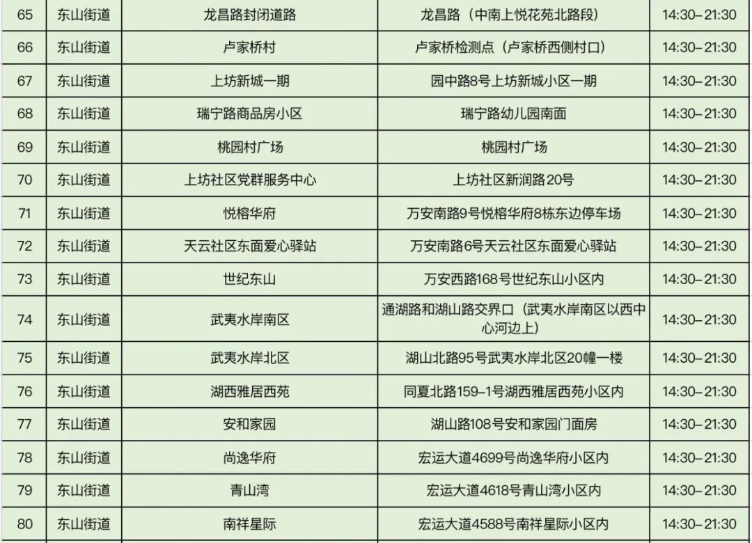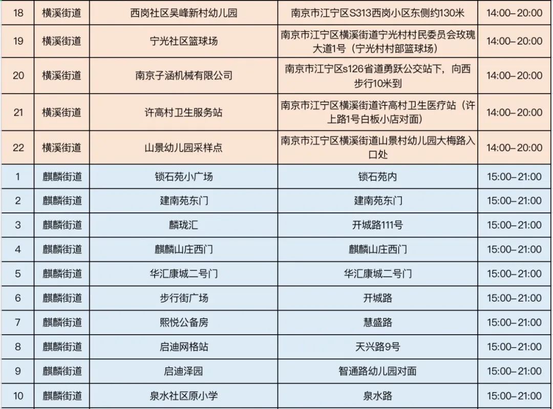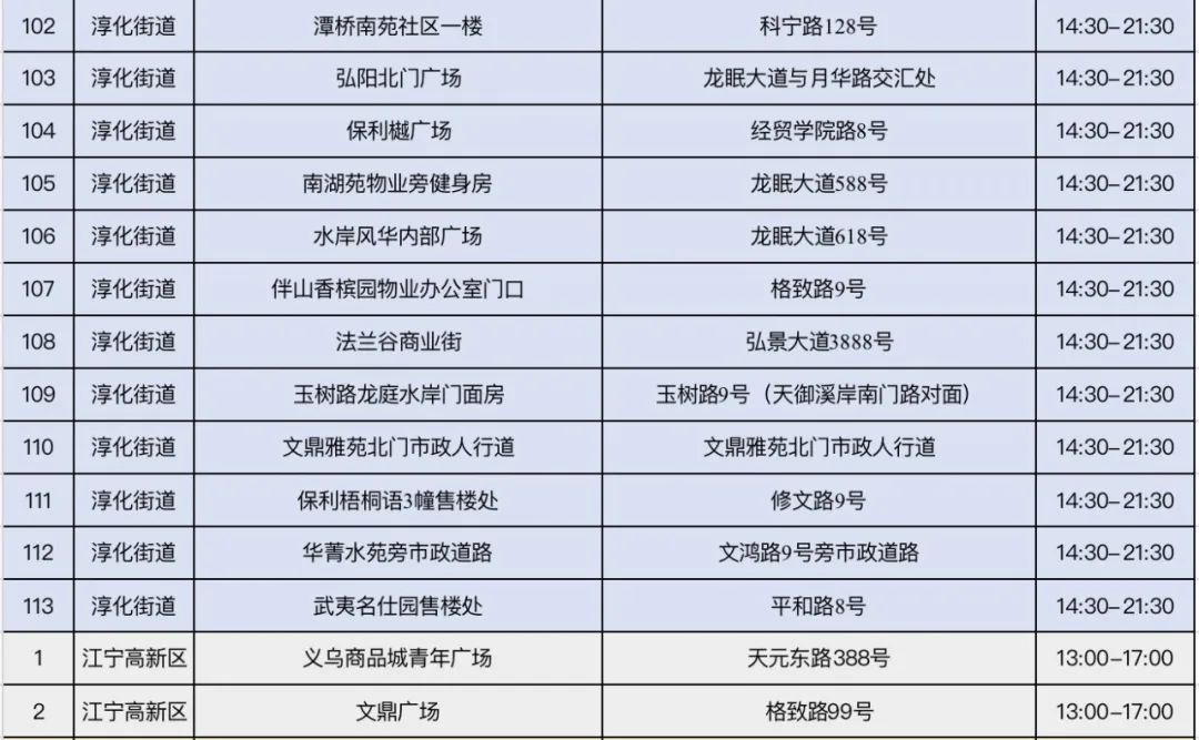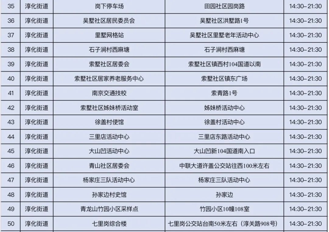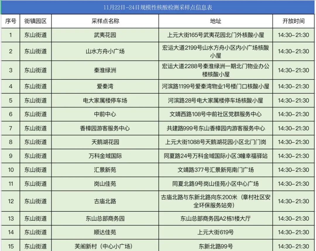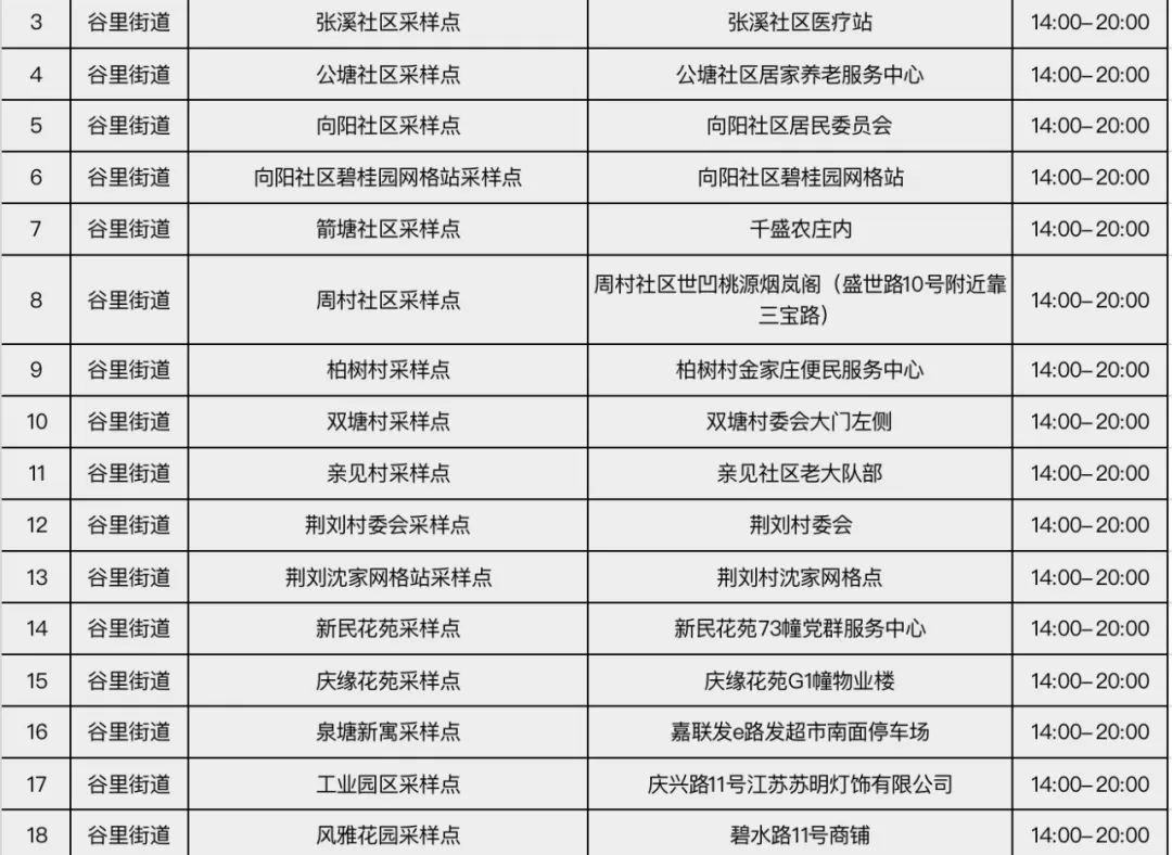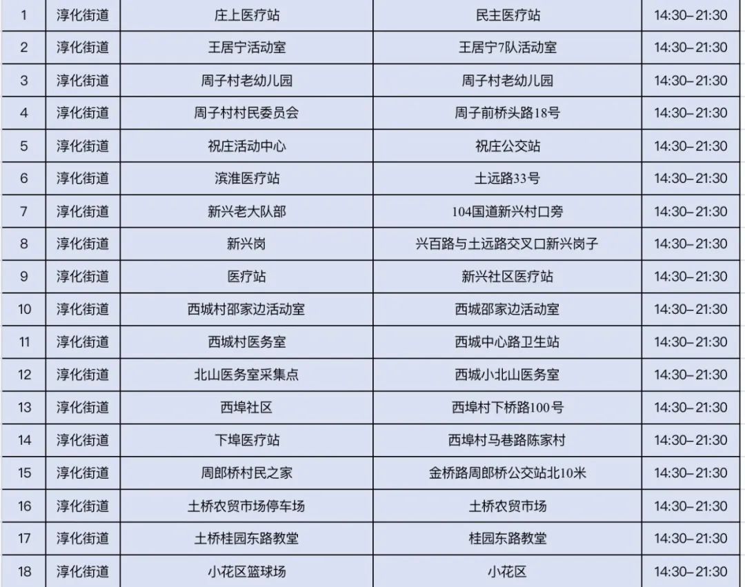规模性核酸检测采样点信息表