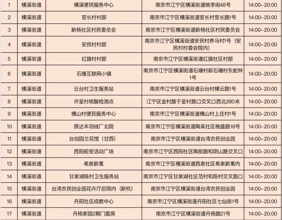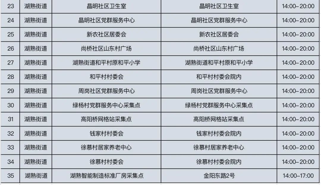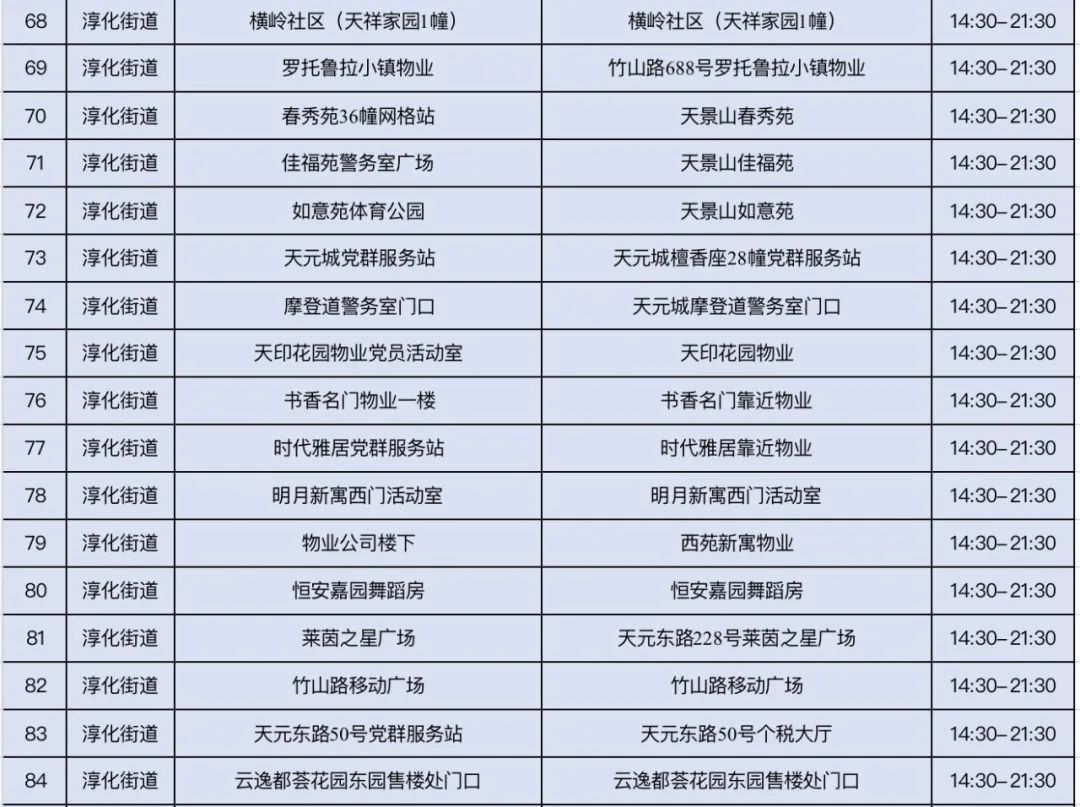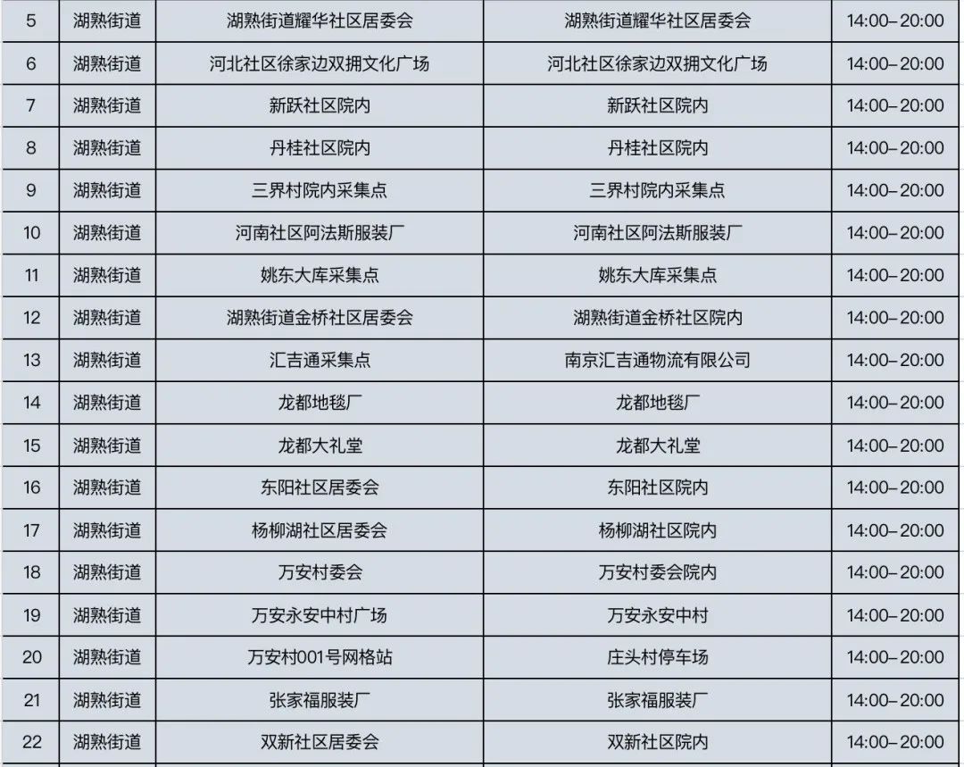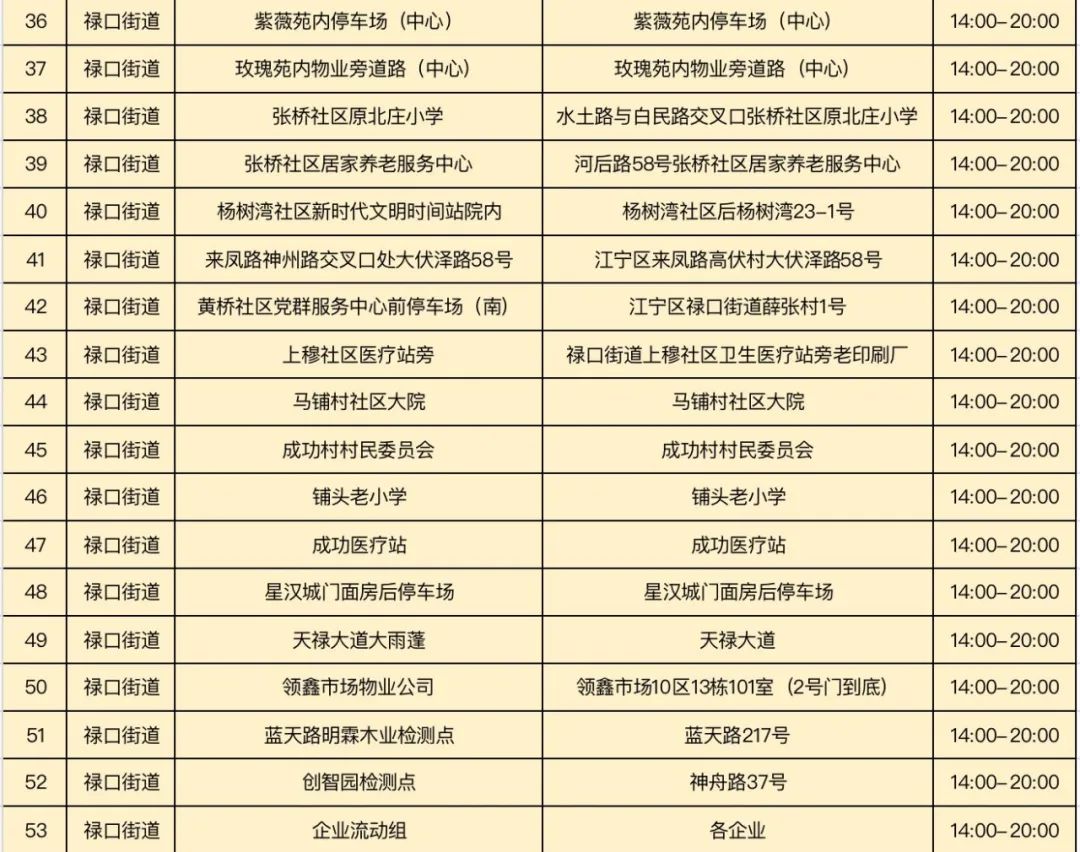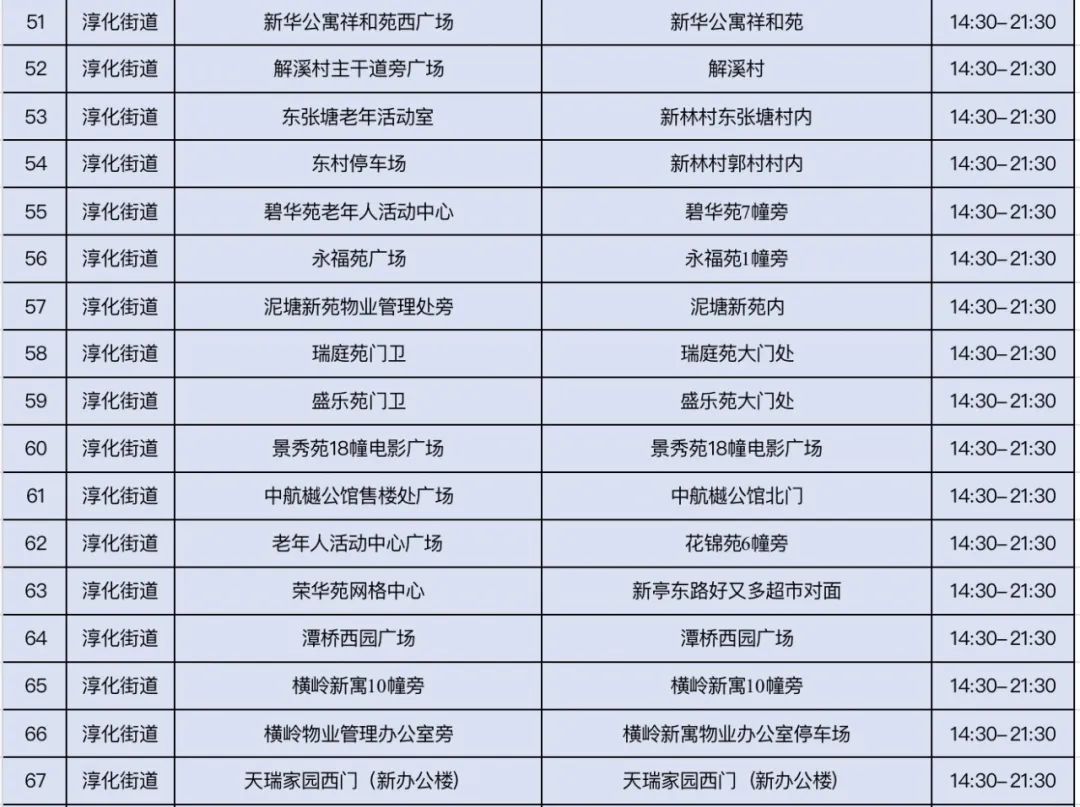 规模性核酸检测采样点信息表