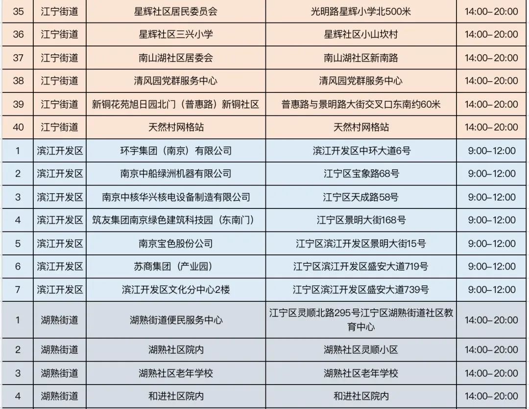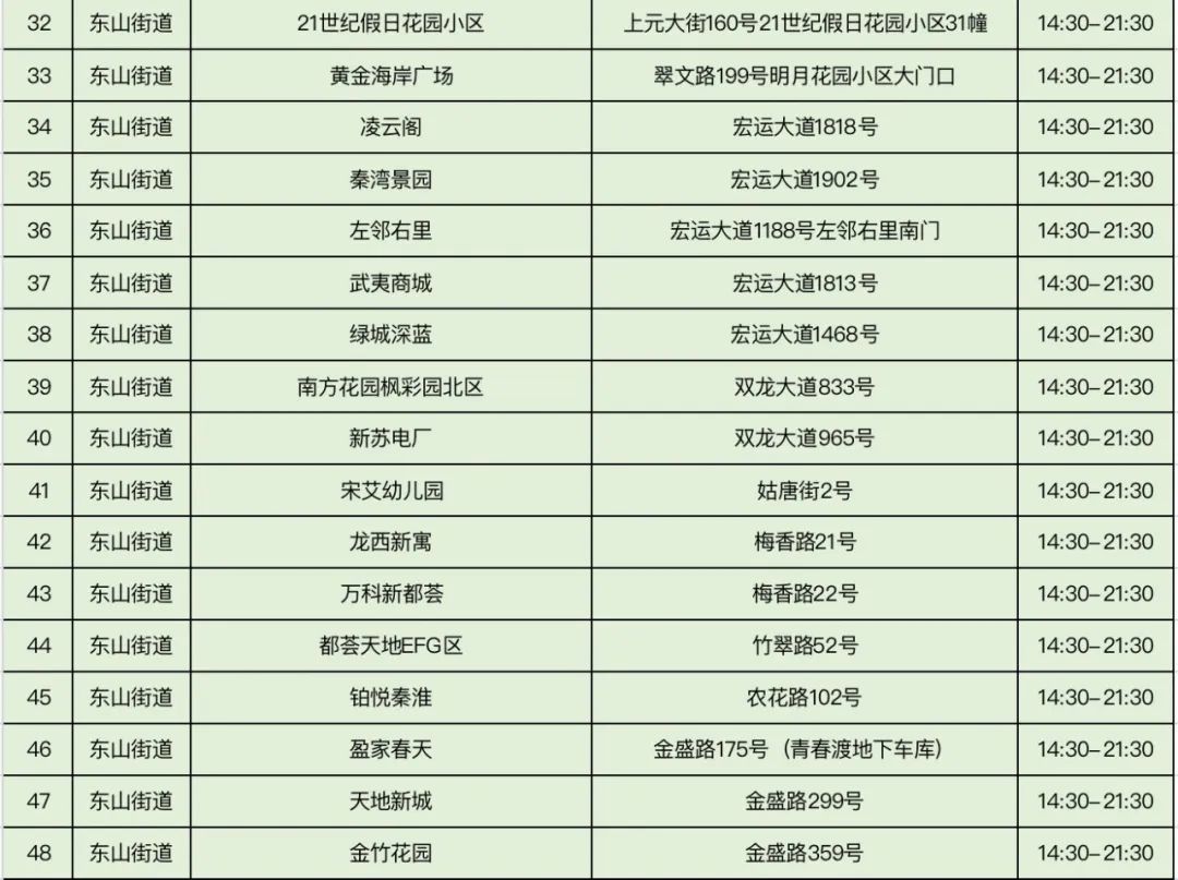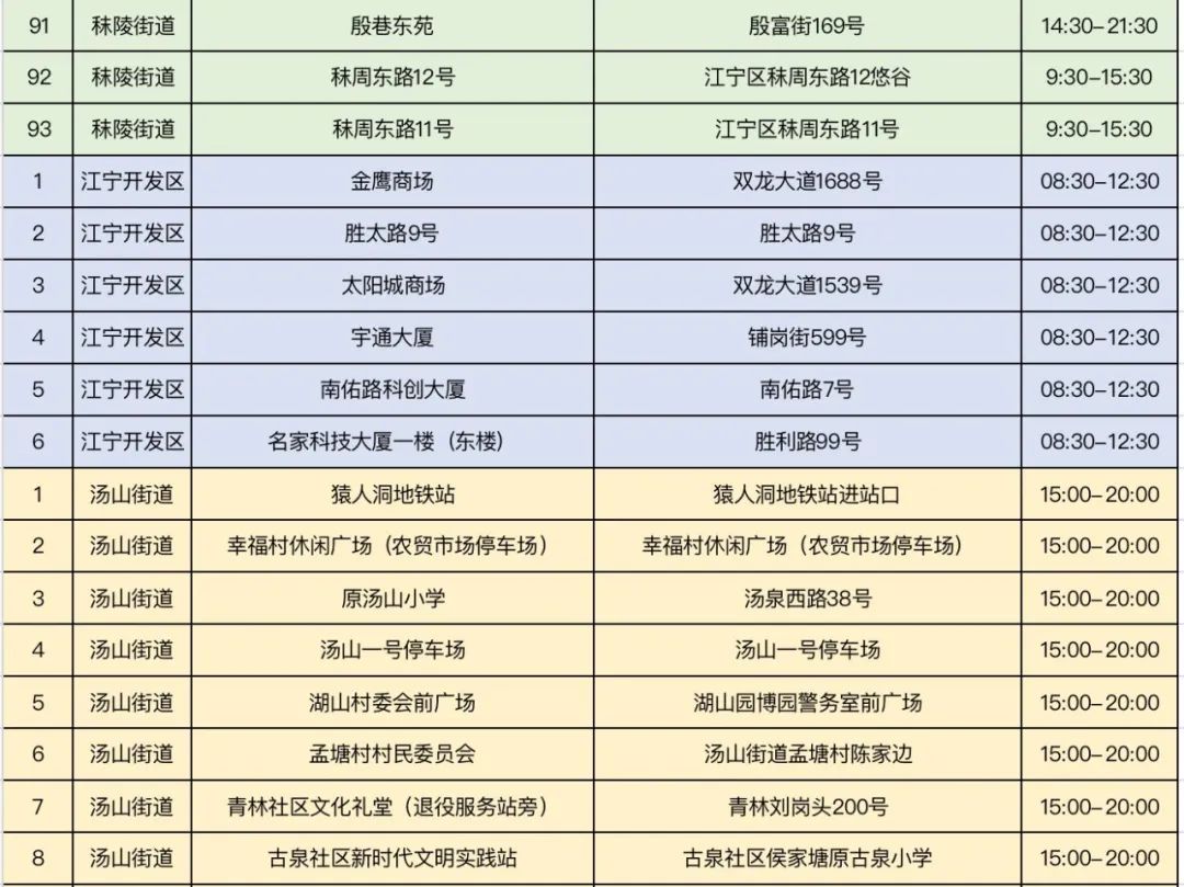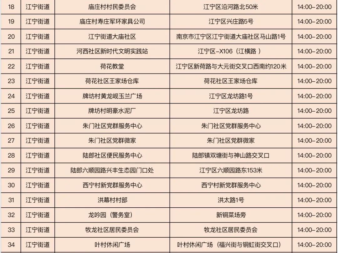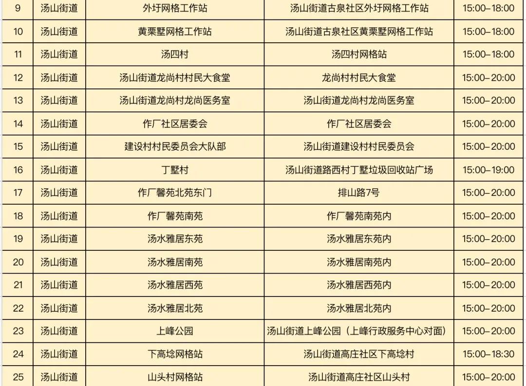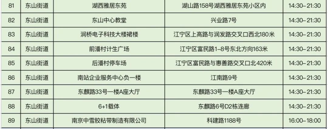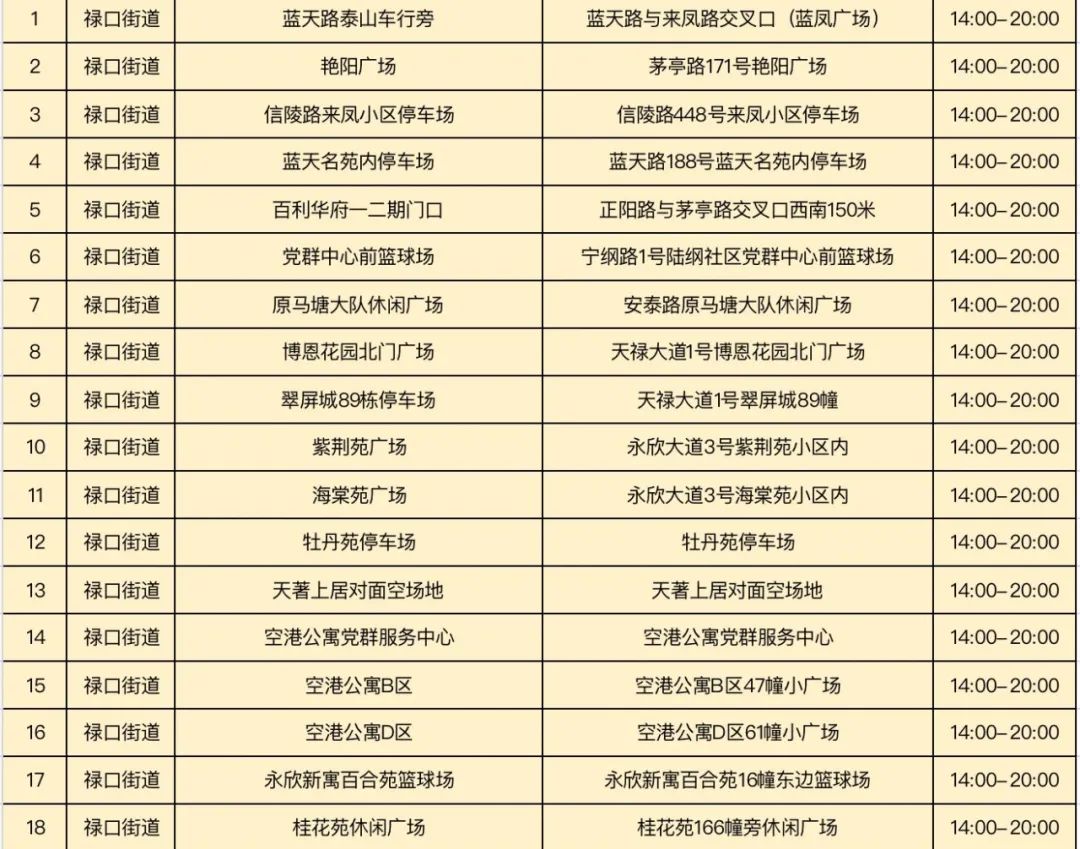 规模性核酸检测采样点信息表