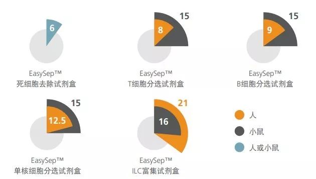 使用EasySep™试剂盒分离细胞所用的时间(以分钟计)