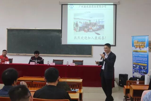1月4日下午,广州康瑞泰药业有限公司2018届毕业生校园招聘宣讲会于我校东区BC楼化学阶梯教室举行。我院2018届非师范专业毕业生参加了此次招聘会。