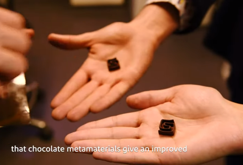 该团队设计了一种具有定制断裂特性的可食用“机械超材料”,通过这种方式让巧克力的脆裂程度和口感更好。通过试验证明,这种创新的材料加工出的巧克力口感更佳,这种方法也为 3D 打印按需设计食品提供了新的思路。