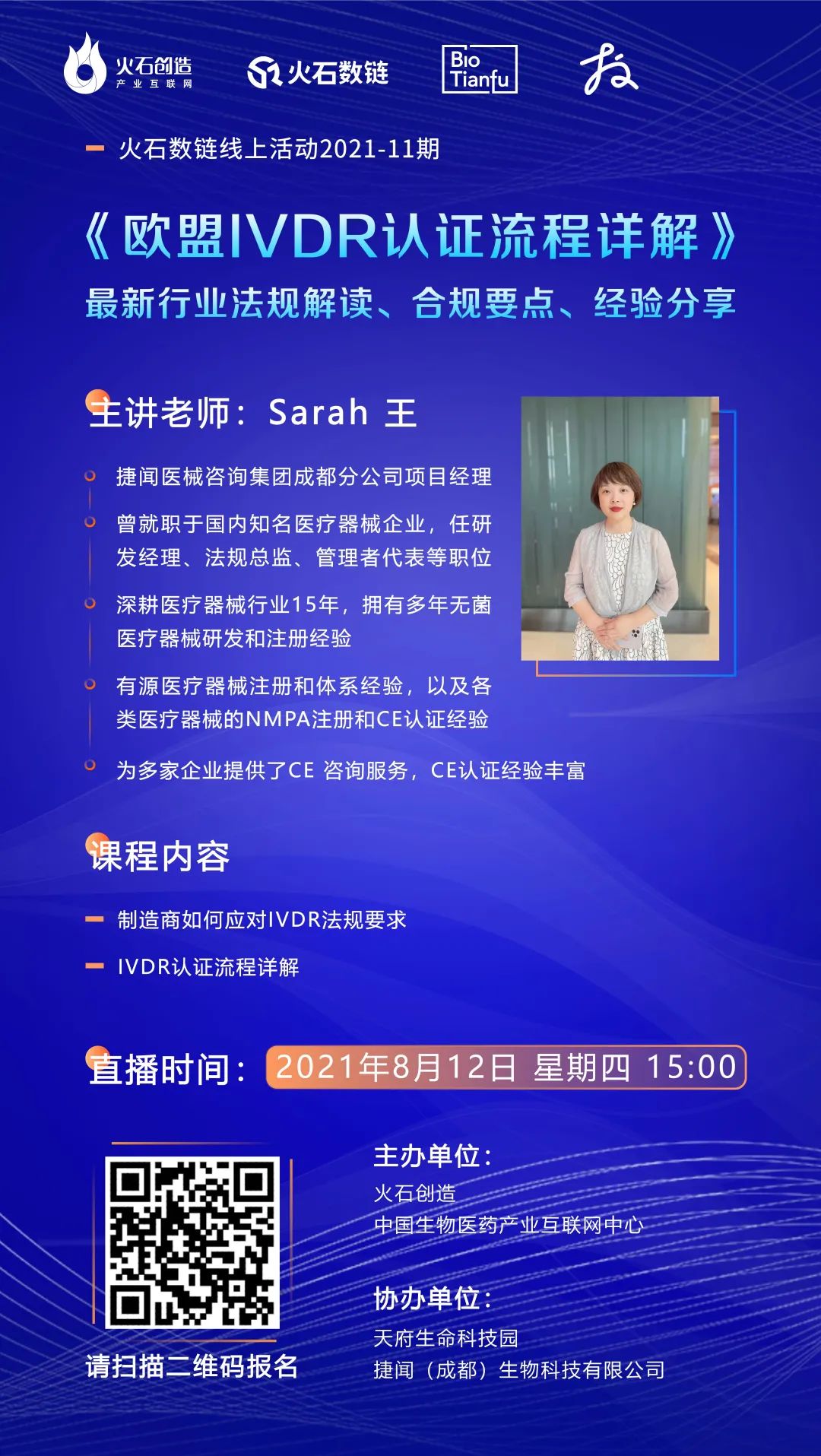 欧盟医疗器械新法规IVDR(EU 2017/746)将于2022年5月26日强制执行,新法规变化较大,如分类变化;也增加了很多全新的要求,如:唯一器械标识(UDI)的要求、CE认证相关方(制造商、欧盟授权代表、经销商等)在欧盟注册的要求(SRN)、上市后市场监督的要求(PMS)等。鉴于这些要求很严格,难度也很大,我们平台邀请资深CE法规专家详细解析IVDR法规要求下的认证流程,旨在帮助厂商实现顺利合规。
