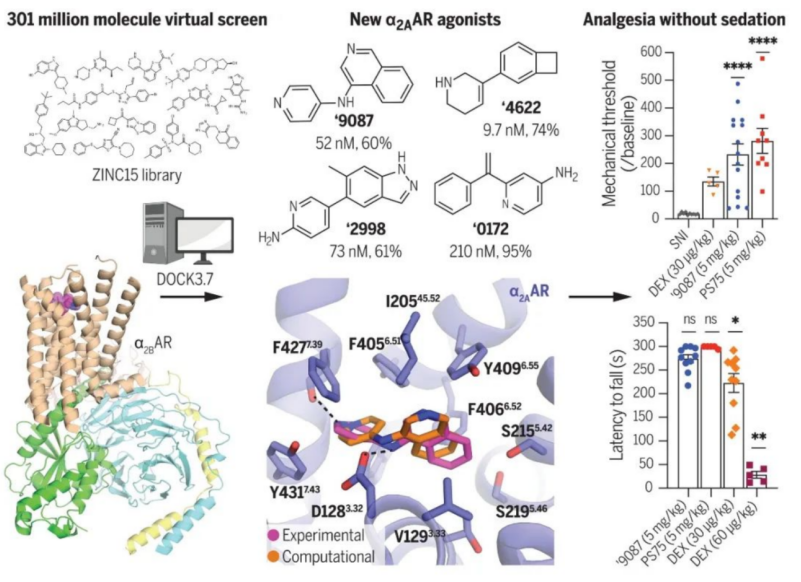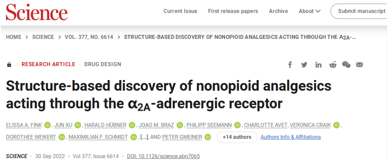 近日,相关论文以《基于结构开发靶向 α 2A -肾上腺素能受体的非阿片类镇痛药》(Structure-based discovery of nonopioid analgesics acting through the α2A-adrenergic receptor)为题发表在 Science 上 [2]。
