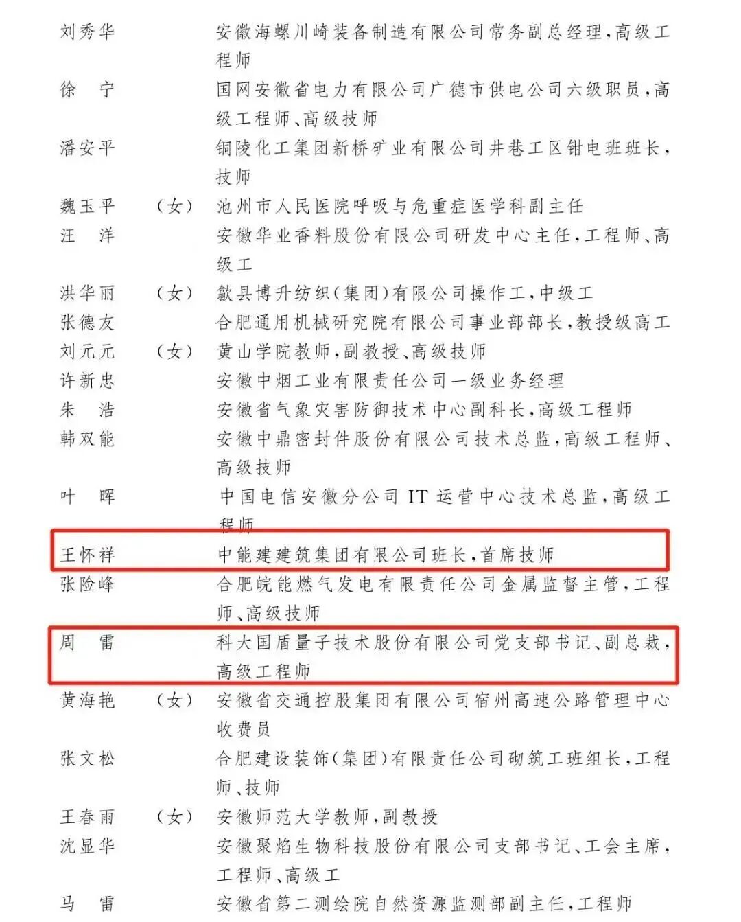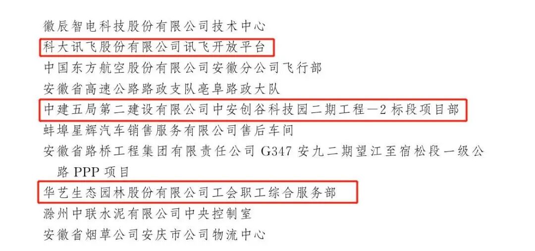 其中,高新区获全国五一劳动奖状1个、全国五一劳动奖章3个、全国工人先锋号4个。获安徽省劳动竞赛先进集体、安徽省五一劳动奖状1个,安徽省劳动竞赛先进集体2个,安徽省劳动竞赛先进个人(安徽省五一劳动奖章获得者)12个,安徽省工人先锋号9个。获合肥市五一劳动奖章7个。