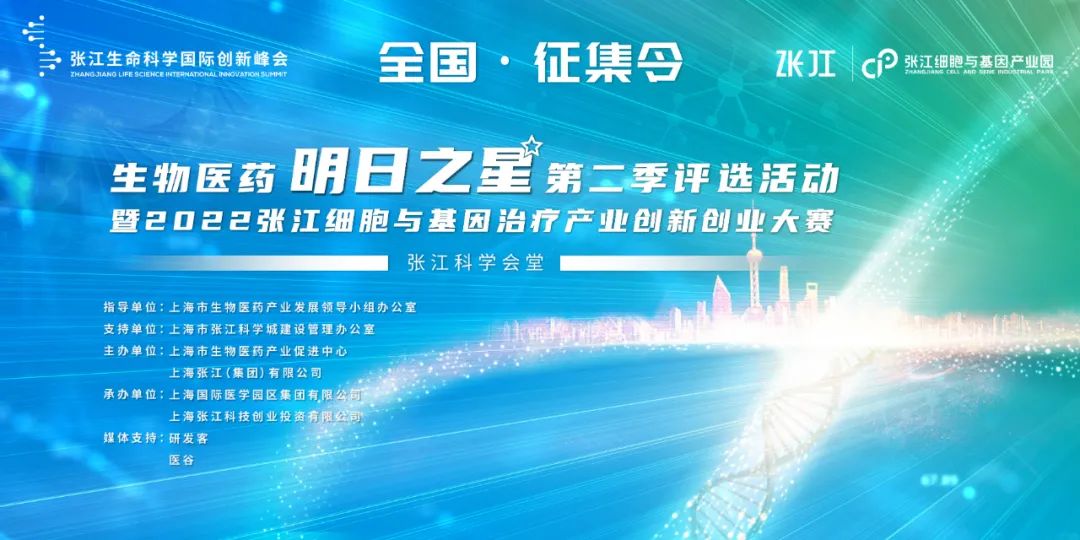 了解“生物医药‘明日之星’第二季评选活动暨2022张江细胞与基因治疗产业创新创业大赛”更多详情,请点击这里