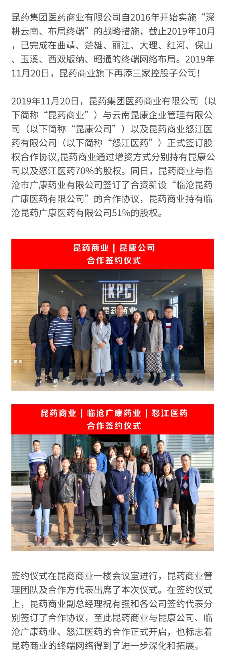 昆药商业旗下再添三名新成员 昆药商业与昆康公司、临沧广康药业、怒江医药合作签约仪式圆满完成!