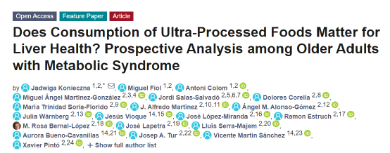 Jadwiga Konieczna, et al. Does Consumption of Ultra-Processed Foods Matter for Liver Health? Prospective Analysis among Older Adults with Metabolic Syndrome. nutrients.2022