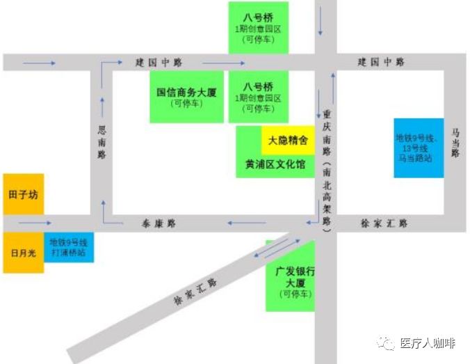 地铁来的朋友可乘地铁13/9号线马当路4号口出站步行500米
