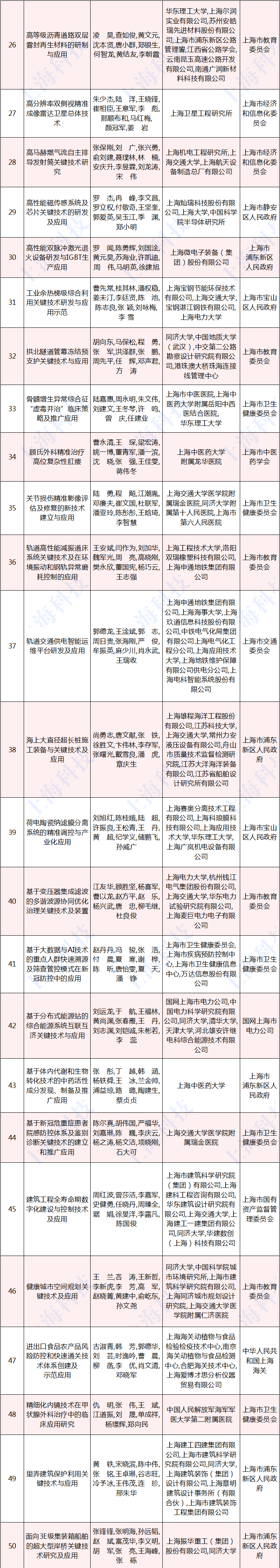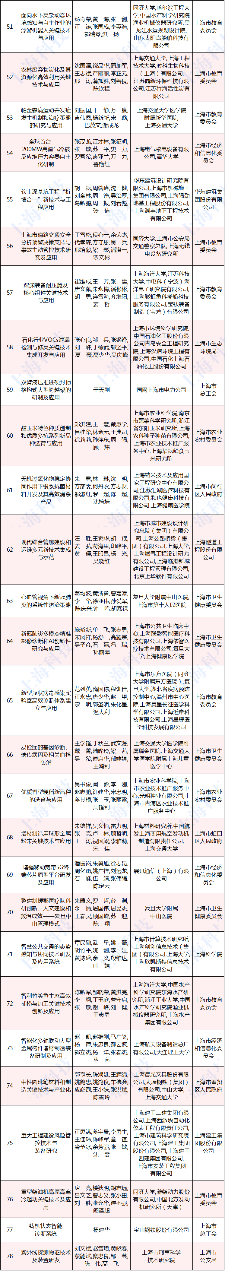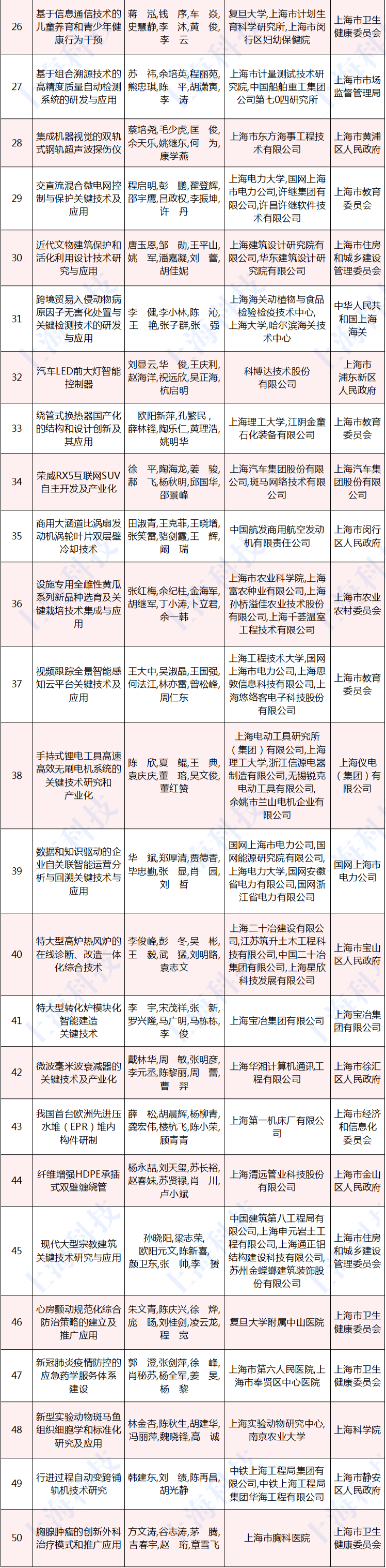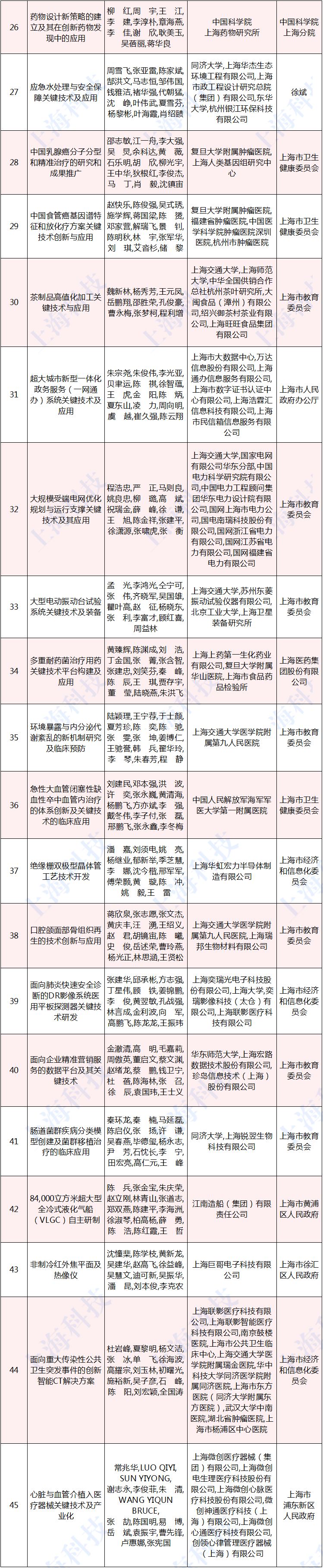 2020年度上海市科学技术奖励