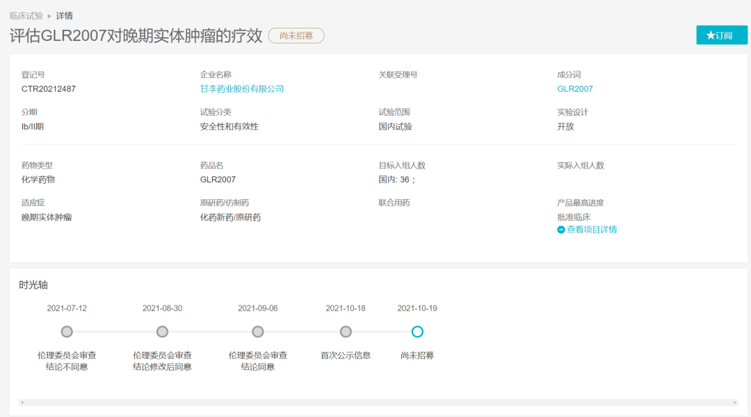 10 月 19 日,Insight 数据库显示,甘李药业自主研发的 CDK4/6 抑制剂 GLR2007 首次在国内启动一项 Ib/II 期临床,用于晚期实体瘤。