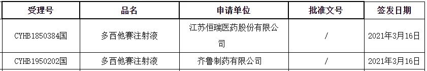 3月25日,NMPA发布最新药品批准信息,江苏恒瑞医药、齐鲁制药的多西他赛注射液一致性评价补充申请获批,截至目前,该产品过评企业达5家,大概率会被纳入第五批国家集采,赛诺菲、汇宇、正大天晴、齐鲁、扬子江、恒瑞即将展开价格激战。