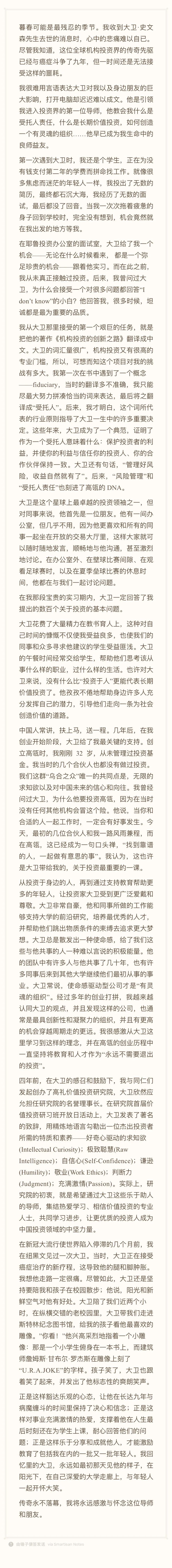 张磊在他撰写的《价值》一书中介绍了和大卫·史文森的相识——“初次相见是在课堂上,但近距离会面却是在耶鲁投资办公室的面试室”,张磊在耶鲁留学时曾在耶鲁投资办公室实习,当时主要工作是研究森林资源,在此期间他不仅从投资角度真正理解了金融体系的最本质功能,还养成了自下而上的研究传统,后来被引入了高瓴。大卫·史文森可以说是张磊在价值投资领域的启蒙恩师。