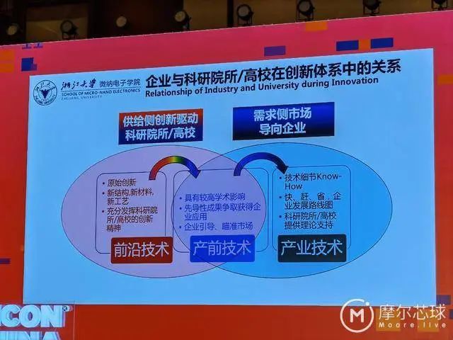 同时,吴汉明院士对企业与科研院所/高校在创新体系中的关系给出了他的建议。