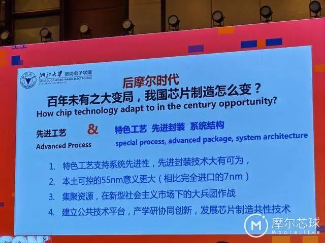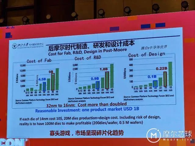 “虽然芯片的难道和成本一直增加,但趋缓的摩尔定律给追赶者带来机会”,吴汉明接着说。