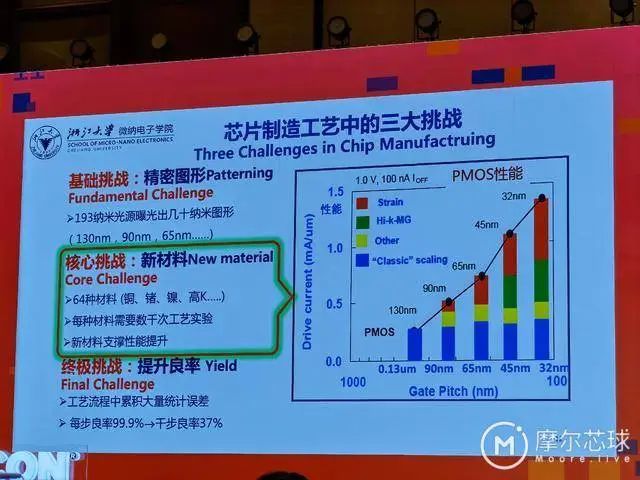 而具体到芯片制造方面,我们则面临包括精密图形、新材料和提升良率在内的三大挑战。