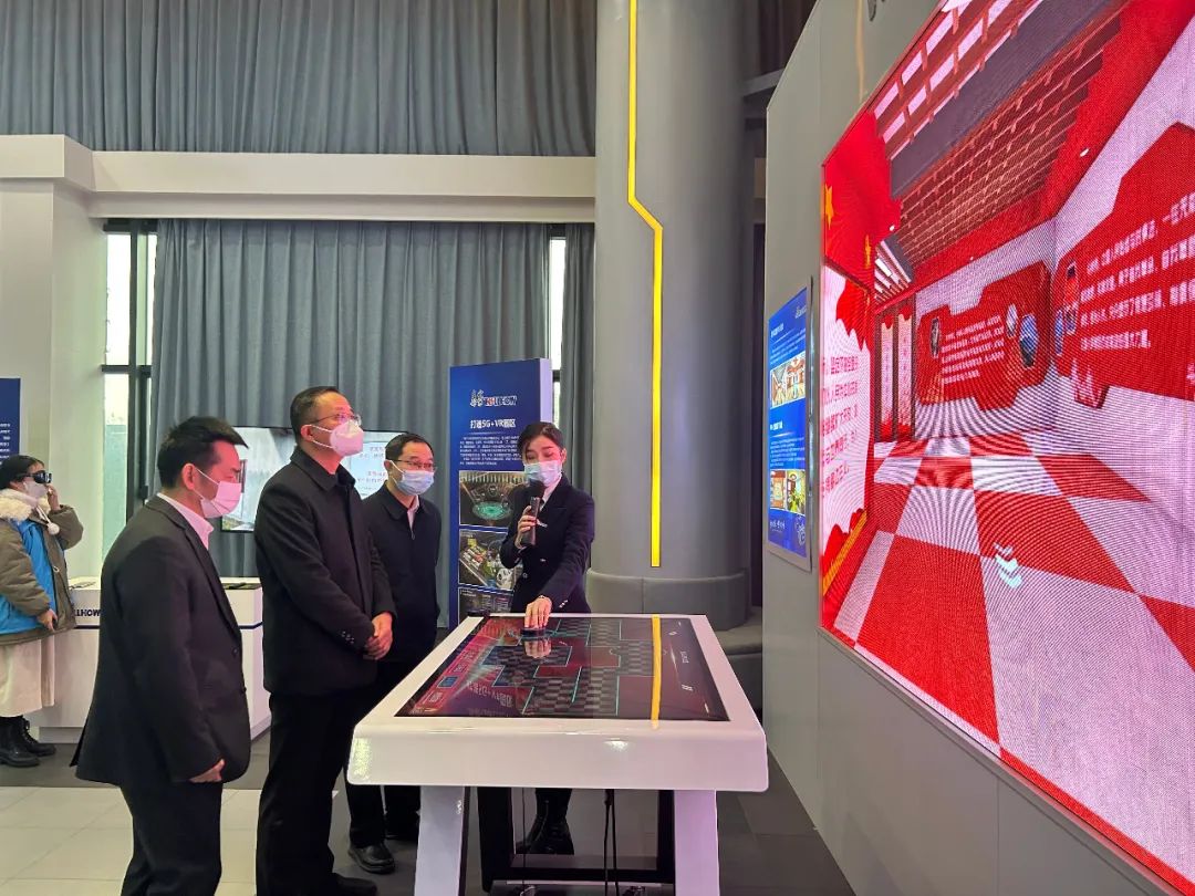 李庆红一行先后参观了泰豪5G+VR数字经济产业体验馆与泰豪产业展示馆。了解了泰豪在VR+文旅、健康、党建、展陈等方面的应用展示,并听取了泰豪创意科技集团副总裁黄小放关于泰豪VR产业生态建设成果汇报,对泰豪在VR研发以及VR产业生态建设方面取得的成绩表示了充分的肯定,并对泰豪未来产品应用方向提出建议及鼓励。