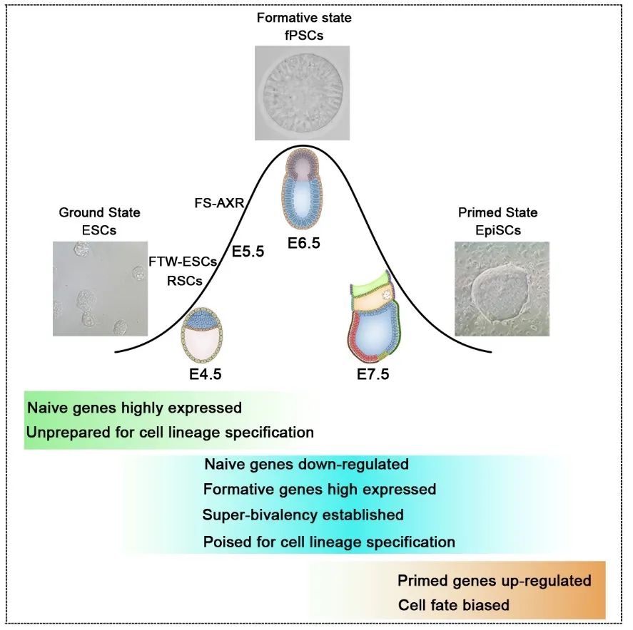 之前的上胚层细胞,可以直接响应三胚层和原始生殖细胞分化的诱导信号,这些细胞被认为是处于原始态和始发态之间的一种新的多能性状态——活化态/塑行态/形成态