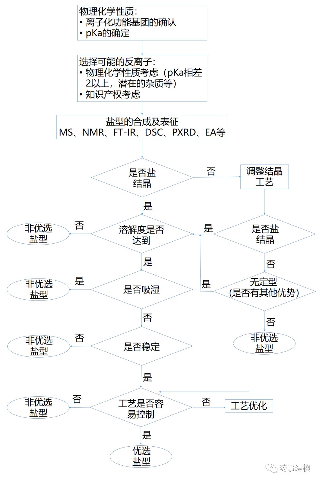 盐型的确定时间极为关键,不同的制药公司会采取不同的策略。但是一旦明确游离形式难以满足成药性要求,尽早确定盐型显得尤为重要。在研究后期进行盐型转变,可能要面对杂质谱的变化、制剂处方的重新开发和稳定性的重新考察,甚至临床方面的桥接,如毒理桥接,生物等效性桥接等。