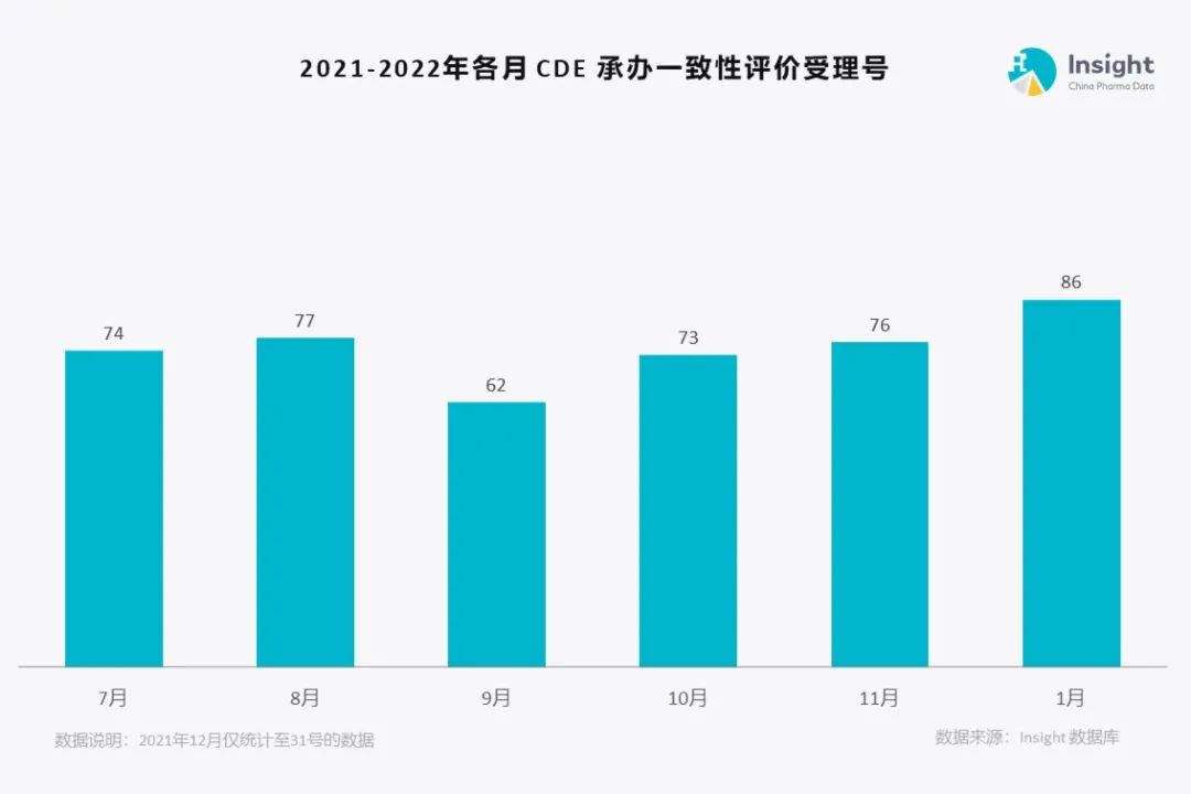 截止 2021 年 12 月 31 号, 12 月份 CDE 承办了 86 个新申报的一致性评价受理号。