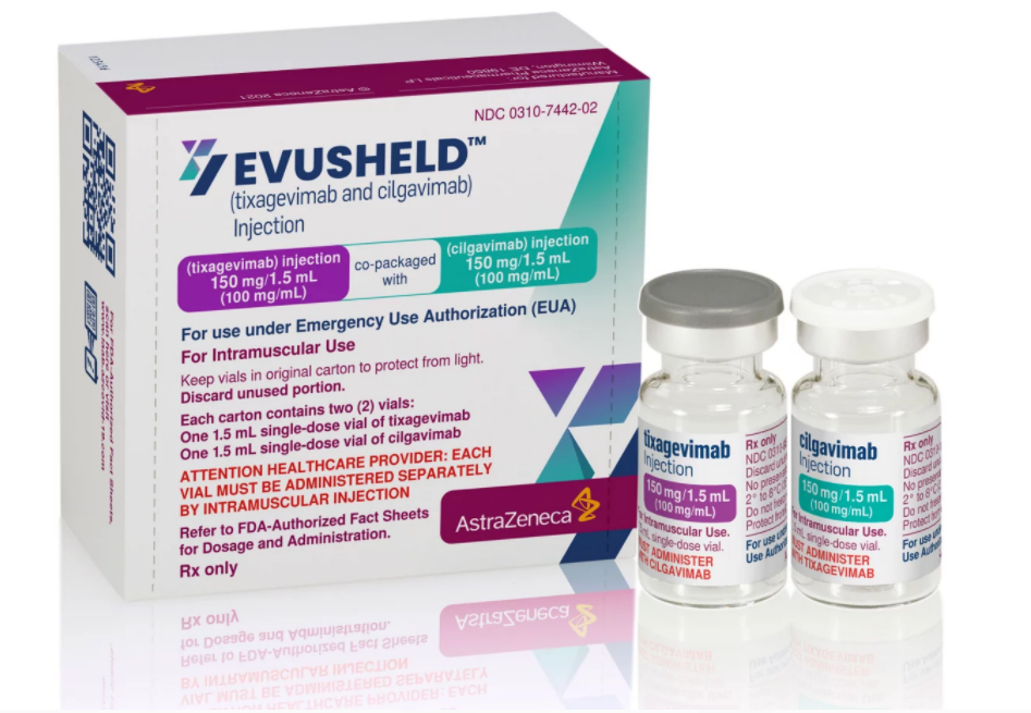 Evusheld是两种单克隆抗体(tixagevimab和cilgavimab)的组合疗法,连续两次单独的肌内注射给药(每个单克隆抗体注射一次,立即连续给药)。这两种抗体分别附着在SARS-CoV-2的刺突蛋白上,阻止病毒进入人体细胞并引起感染。由于tixagivimab和cilgavimab与刺突蛋白上不同的非重叠位点结合,因此它们比单独使用任何一种更有效。
