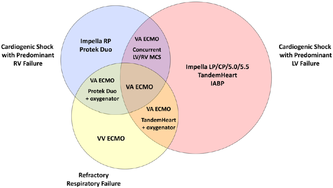 同时患有难治性呼吸衰竭的患者,应考虑选择静脉-动脉型ECMO。