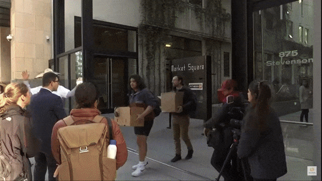 就在马斯克接管的第二天,各大媒体纷纷带着自己的全套家伙事,跑到推特大楼外坐等「大新闻」从天而降。
