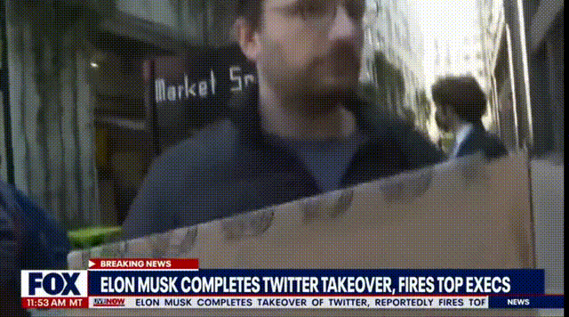 在外媒看来,两位男子的出现简直是有如神助,盼啥来啥,各大媒体赶紧把素材往网上咔咔一顿发,位置都在头条:「被解雇的推特员工正抱着箱子离开总部大楼。」