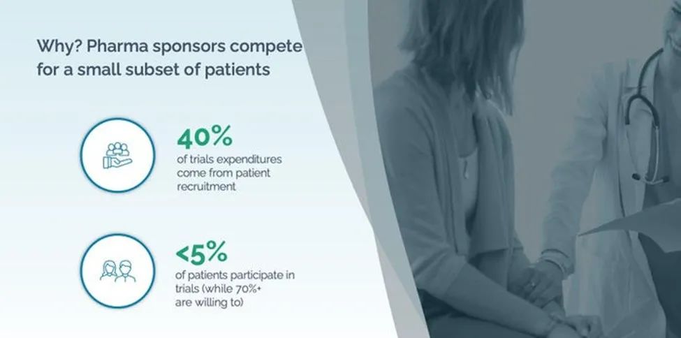 在国际临床转化研究领域也存在类似问题。目前全球医药研发产业流程中有高达500亿美元的临床试验服务项目。招募和组织临床试验往往让药企花费更多时间和投入大量资金而颗粒无收。