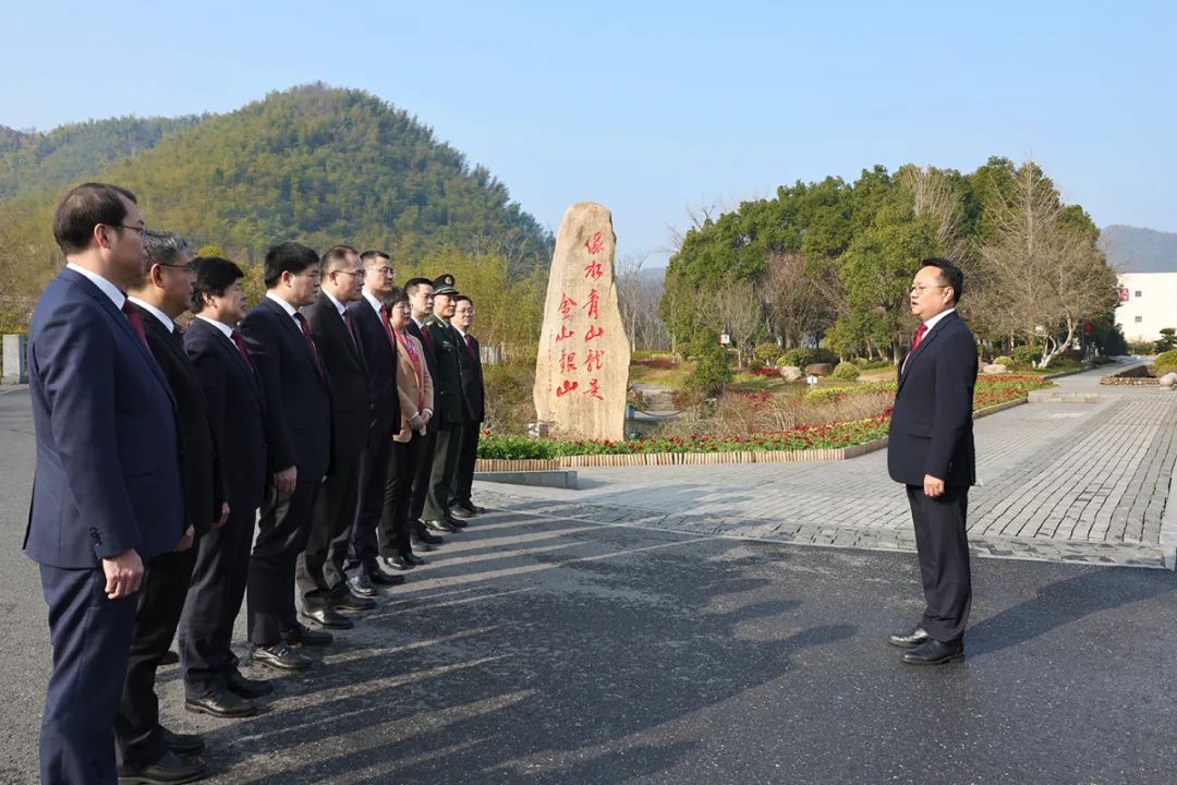 初春的余村,绿水逶迤去,青山相向开,一派生机勃勃的景象。村口矗立着的石碑上,“绿水青山就是金山银山”十个大字在阳光照射下显得格外耀眼。新一届市委常委班子成员来到石碑前驻足凝视,听取村支书有关情况介绍。2005年8月15日,时任浙江省委书记习近平在余村考察时首次提出绿水青山就是金山银山理念。十多年来,在这一理念指引下,余村从“卖石头”到“卖风景”,实现了村强、民富、景美、人和的美丽嬗变;全市上下坚持生态优先、绿色发展,加快进入了蓄势蝶变的上行通道。2020年3月30日,习近平总书记再次考察余村,赋予湖州“再接再厉、顺势而为、乘胜前进”的新期望新要求。大家边学习边思考,深感责任重大、使命光荣,表示将坚定不移照着总书记指引的路子走下去,始终坚持以民为本、实事求是、创新实干,跑好接力赛,奋进新征程,努力创造无愧于时代、无愧于历史、无愧于人民的优秀业绩。
