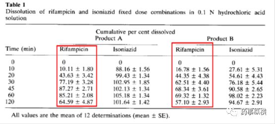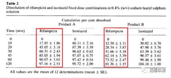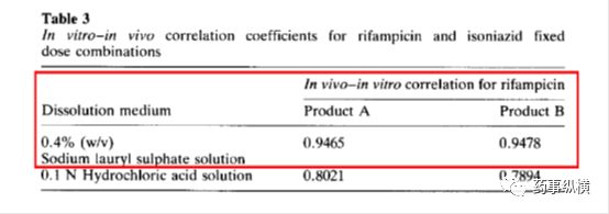利福平与异烟肼复方制剂在进行溶出曲线测定时发现利福平在0.1N盐酸中不稳定,发生降解。由于利福平在水中不溶,因此采用了0.4%SDS溶液进行了研究,结果表明在整个分析检测过程中无降解。而且,0.4%SDS溶液的体内外相关性很好。