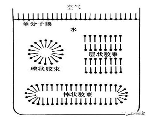 一般认为,在表面活性剂浓度不大时,没有其他添加剂的溶液中胶束大多呈球状,在十倍于CMC或更浓的溶液中,胶束一般为非球状,如棒状;随着溶液浓度的不断增加,棒状胶束聚集呈束状,浓度更大时形成层状。