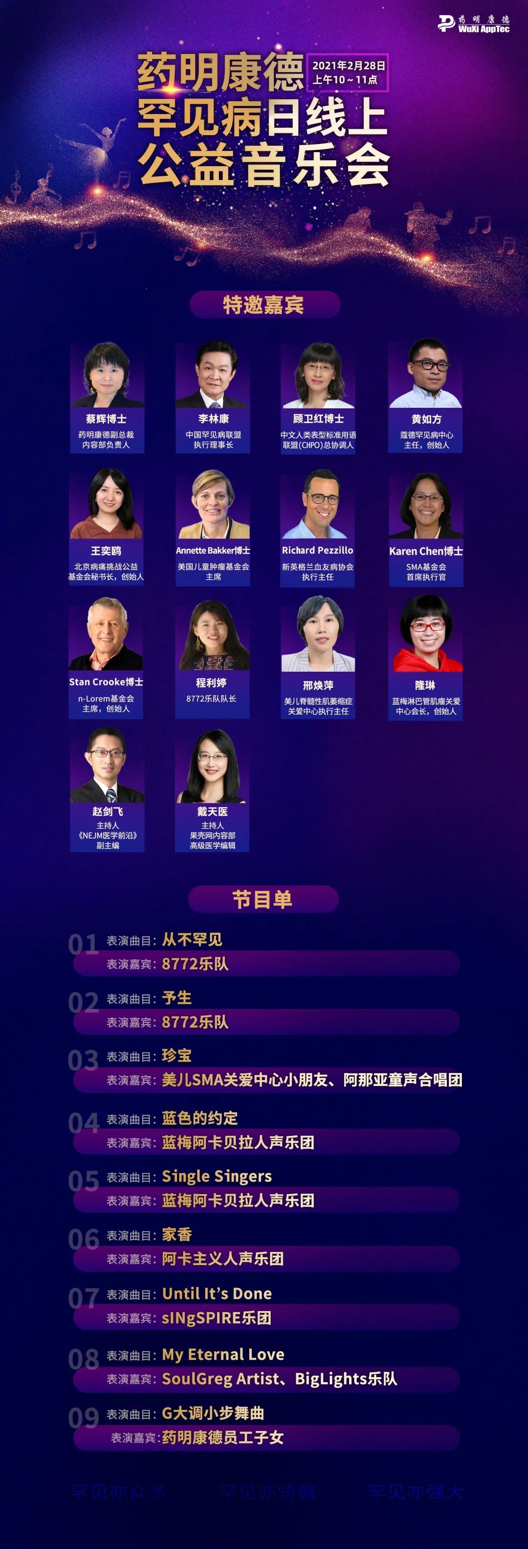 首届药明康德罕见病日公益音乐会将在2月28日上午10-11点在线上进行。扫描下方二维码,或点击文末“阅读原文/Read more”,即可了解更多详情并在活动当天进入直播。