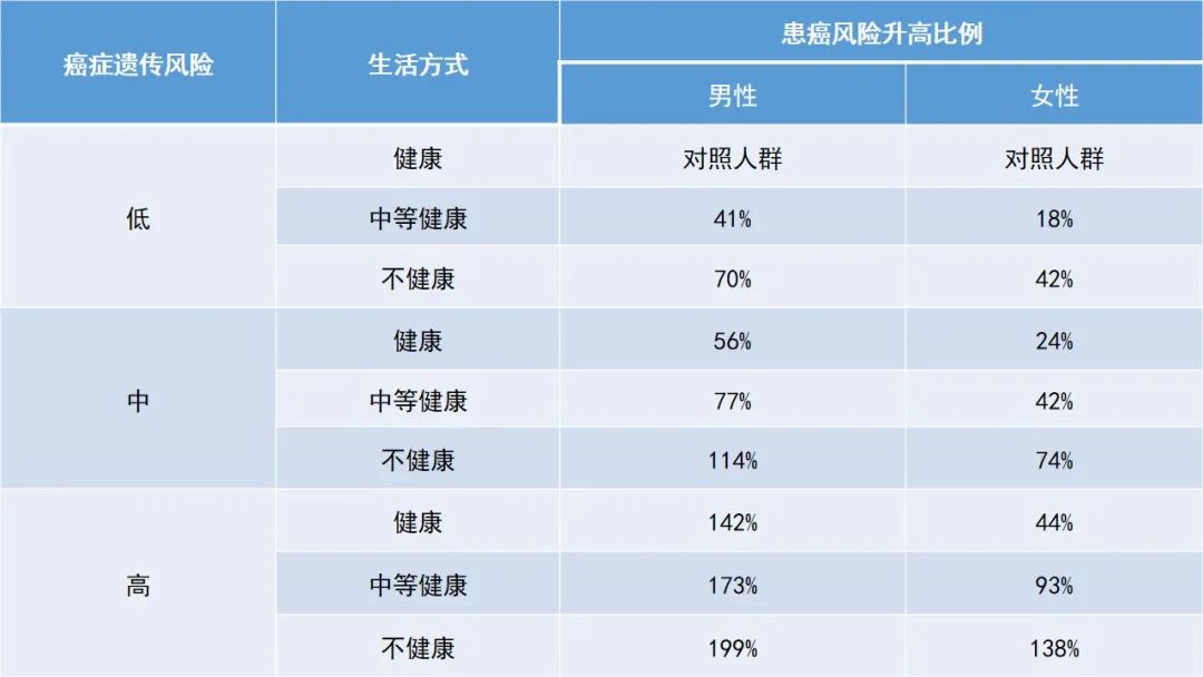 癌症的遗传风险在出生时就存在,而生活方式通常在中年时形成。因此,对癌症高遗传风险人群进行有效的行为干预,尤其是在生命早期形成不良生活方式之前,很可能是预防癌症发生的有效措施。