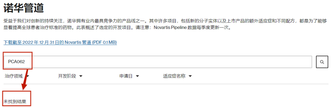 目前,诺华官网在研管道中已无法查询 PCA062 的相关进展。