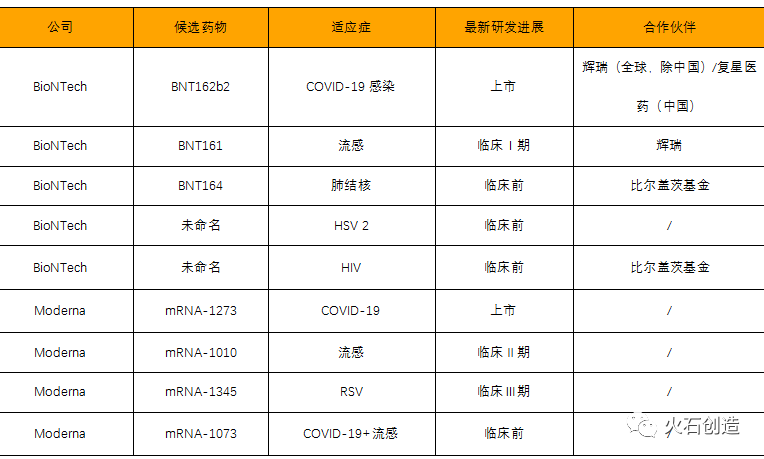表1:BioNTech和Moderna公司mRNA疫苗研发管线