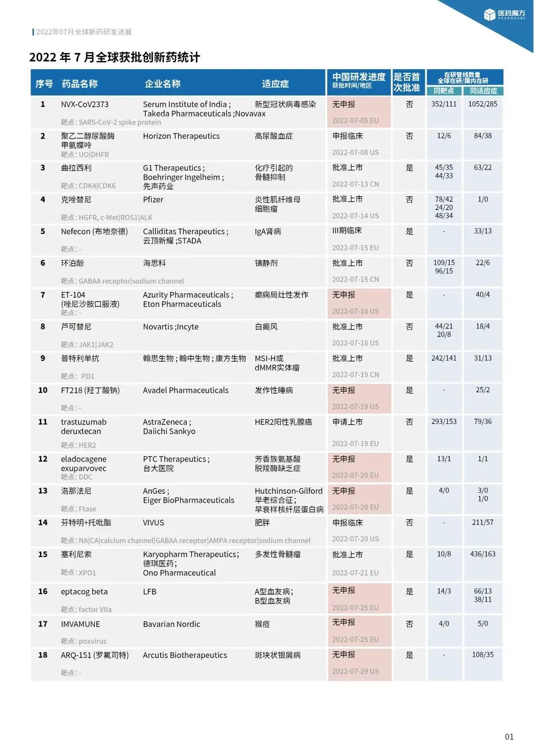 本次直播主会从医药魔方全球新药研发进展7月月报中抽选部分内容进行讲解,该报告专注于收录以下几类重要进展:
