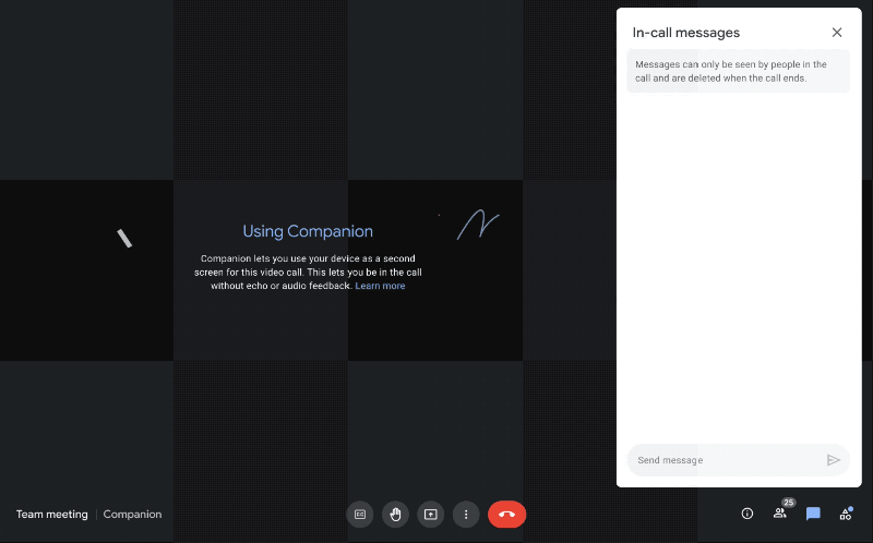 11月,Meet还将发布同伴模式(Companion mode),用户只需要点击入会,即可在同一个会议室内使用笔记本电脑直接参加会议。